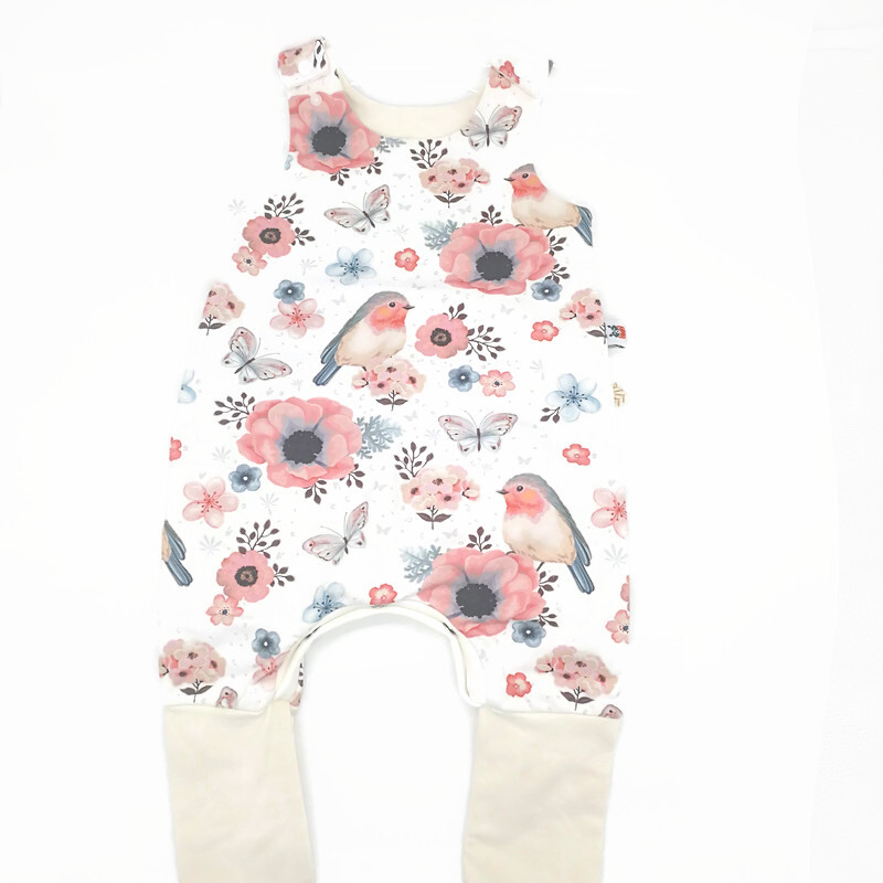 Rugalmas pamut futter-ből készült romper hosszú passzéval. Ez az anyag a melegítő/szabadiő anyagnak felel meg.