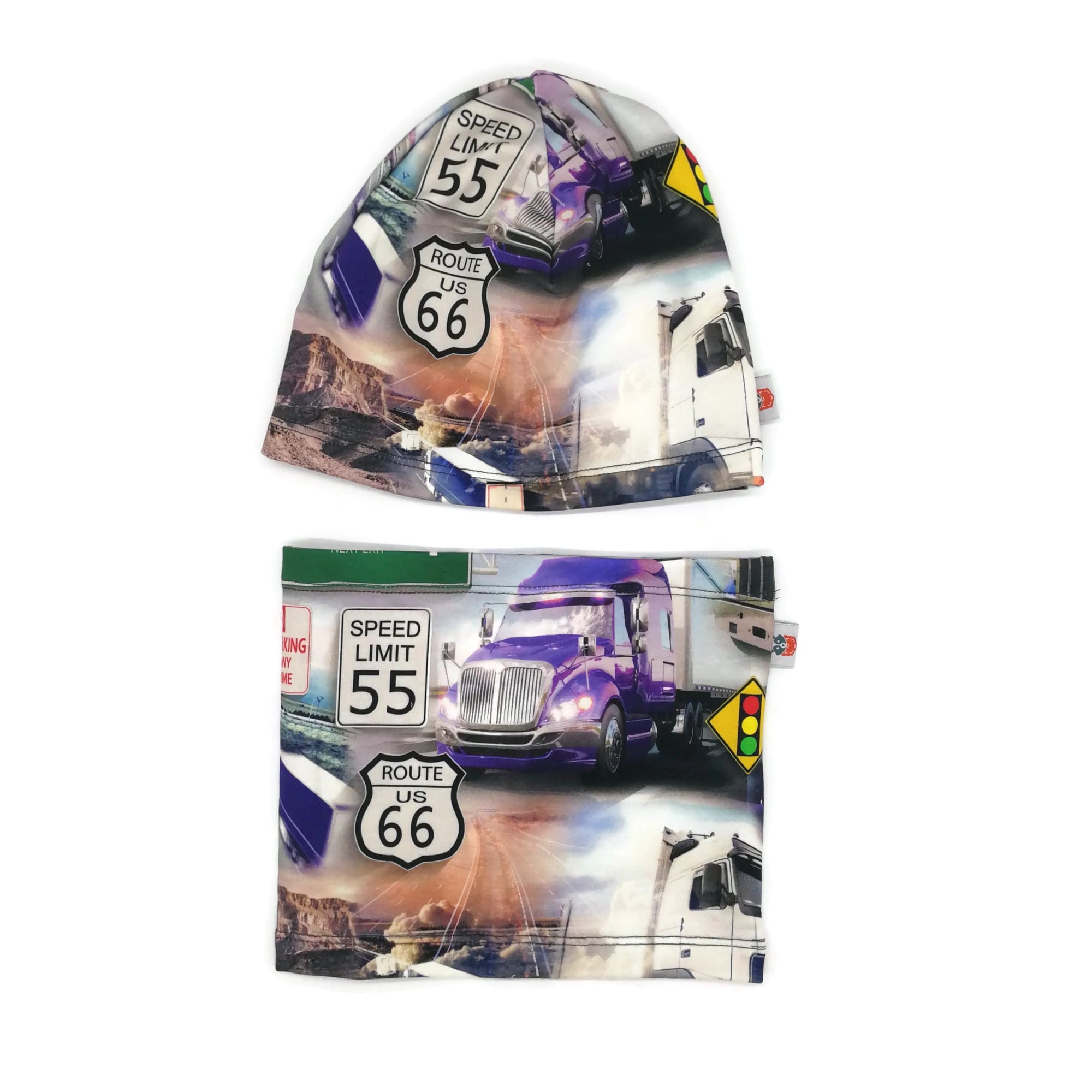 Egyrétegű rugalmas szabadidő anyagból készült sapi és körsál.  Ideális hűvösebb időben.