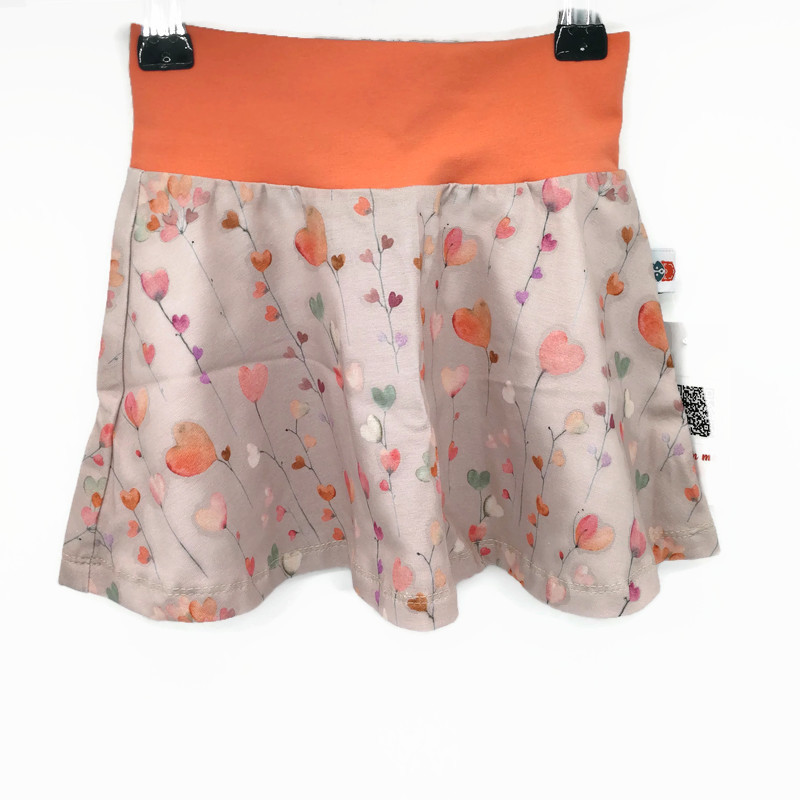 Rugalmas anyagból készült pörgős szoknya, passzés derékkal.