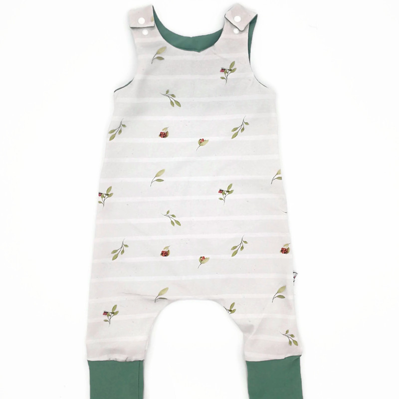 Rugalmas pamut futter-ből készült romper hosszú passzéval. Ez az anyag a melegítő/szabadiő anyagnak felel meg.