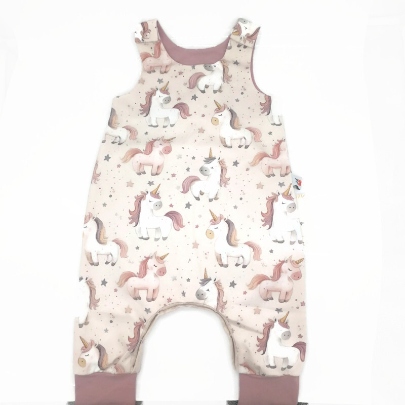 Rugalmas pamut futter-ből készült romper hosszú passzéval. Ez az anyag a melegítő/szabadiő anyagnak felel meg.